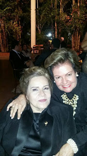 A bela Dô cumprimentando a amiga Maria Adna, agora Presidente do TRT da 5ª região. Essas mulheres dão um show de elegância. Lindas!
